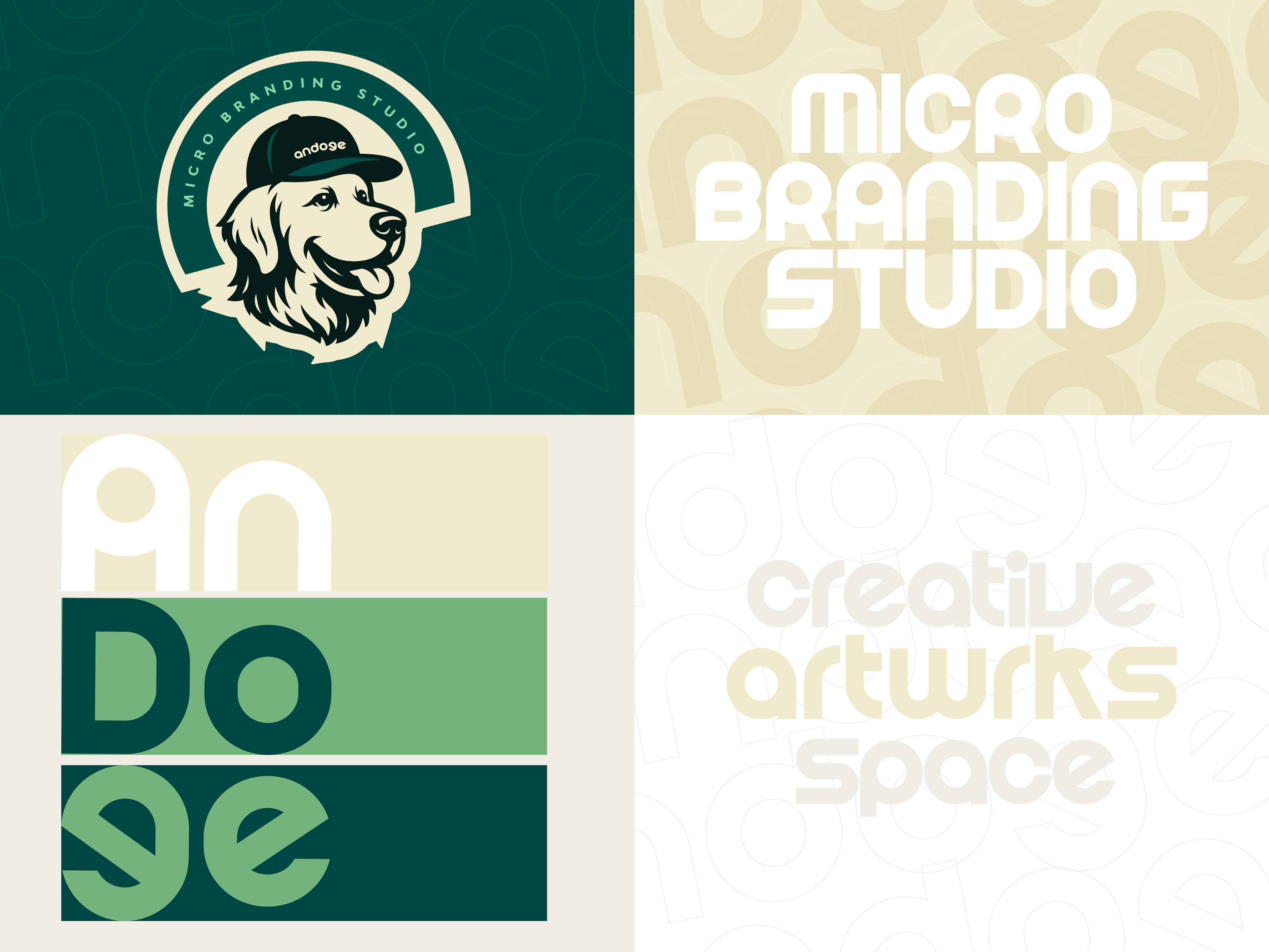One of the most distinctive elements is the Andoge dog mascot. It represents loyalty, friendliness, and creative spirit, adding human warmth while keeping the identity fun, simple, and easy to recognize.